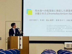 奥村助教は「用水路への転落後に発症した膝蓋骨骨折関連感染の臨床経過と分離されたChromobacterium haemolyticumの菌株解析、伊東教授は「シンポジウム”(難治性)薬剤耐性グラム陰性菌対応とどう対峙するかーCAZ/AVI、セフィデロコル、CTLZ/TAZ、IPM/CS/RELを使い分ける」を担当いたしました。